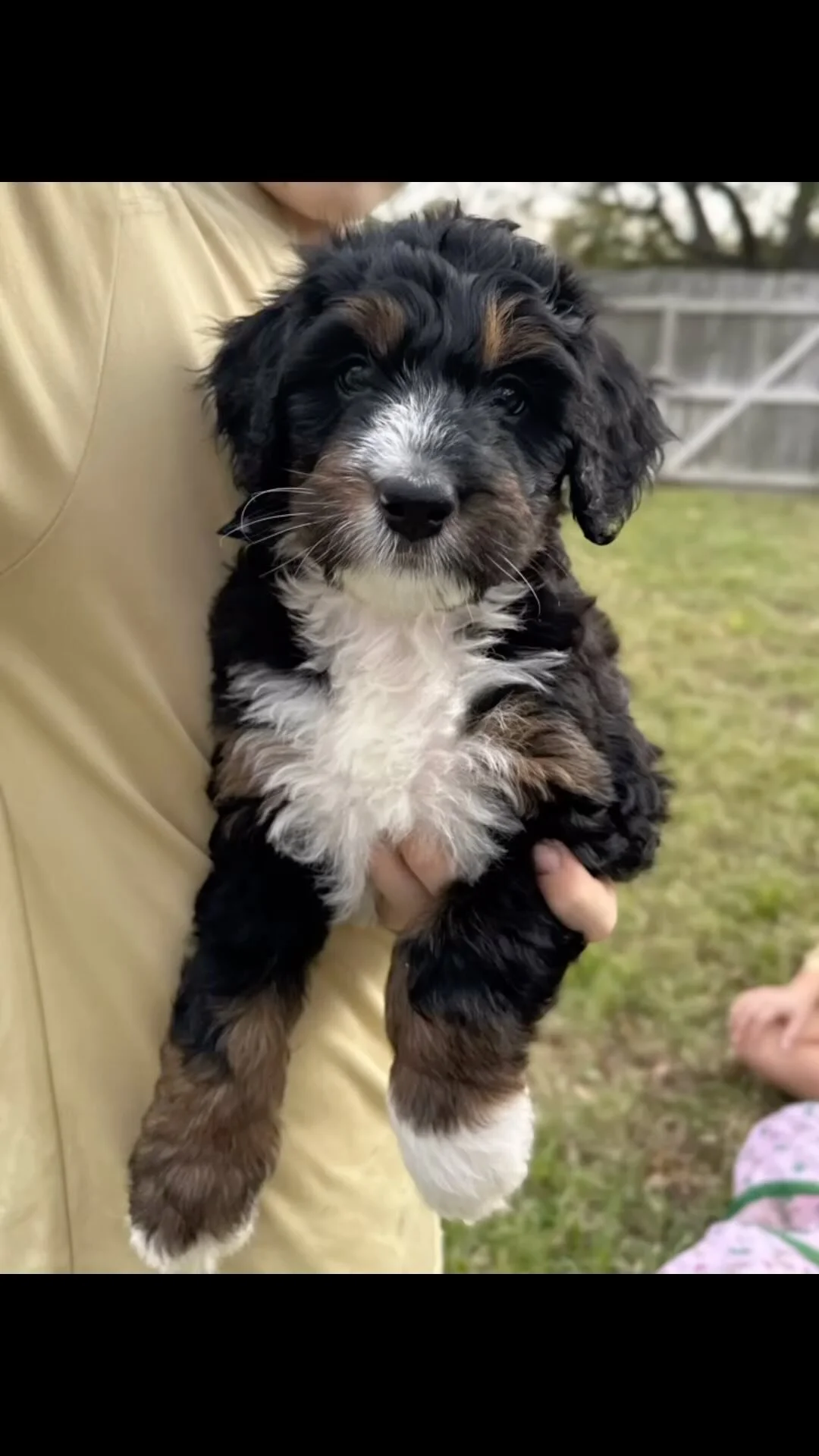 Thanks for your interest in our dogs. We are a family of 5 in Texas and we are happy you found us in your search for a Bernedoodle breeder! We have always loved dogs, and our children have grown up with dogs and other animals. We spend an enormous amount of time with our animals and truly consider them part of the family. Our Bernedoodle breeding story began when we got our first Bernedoodle puppy, Tess. People everywhere we went admired what a beautiful, gentle, and smart creature she is and couldn’t help but want one of their own!