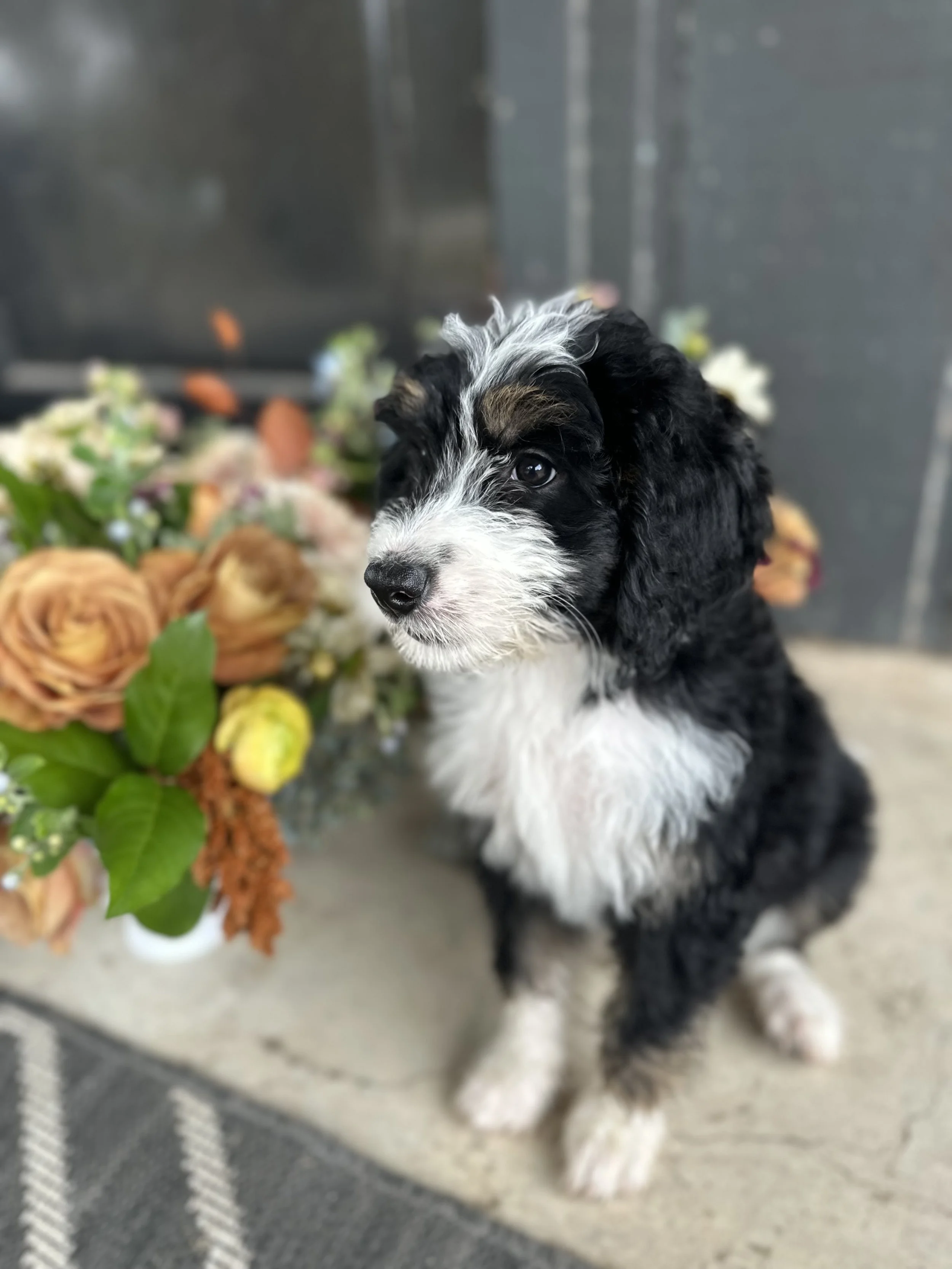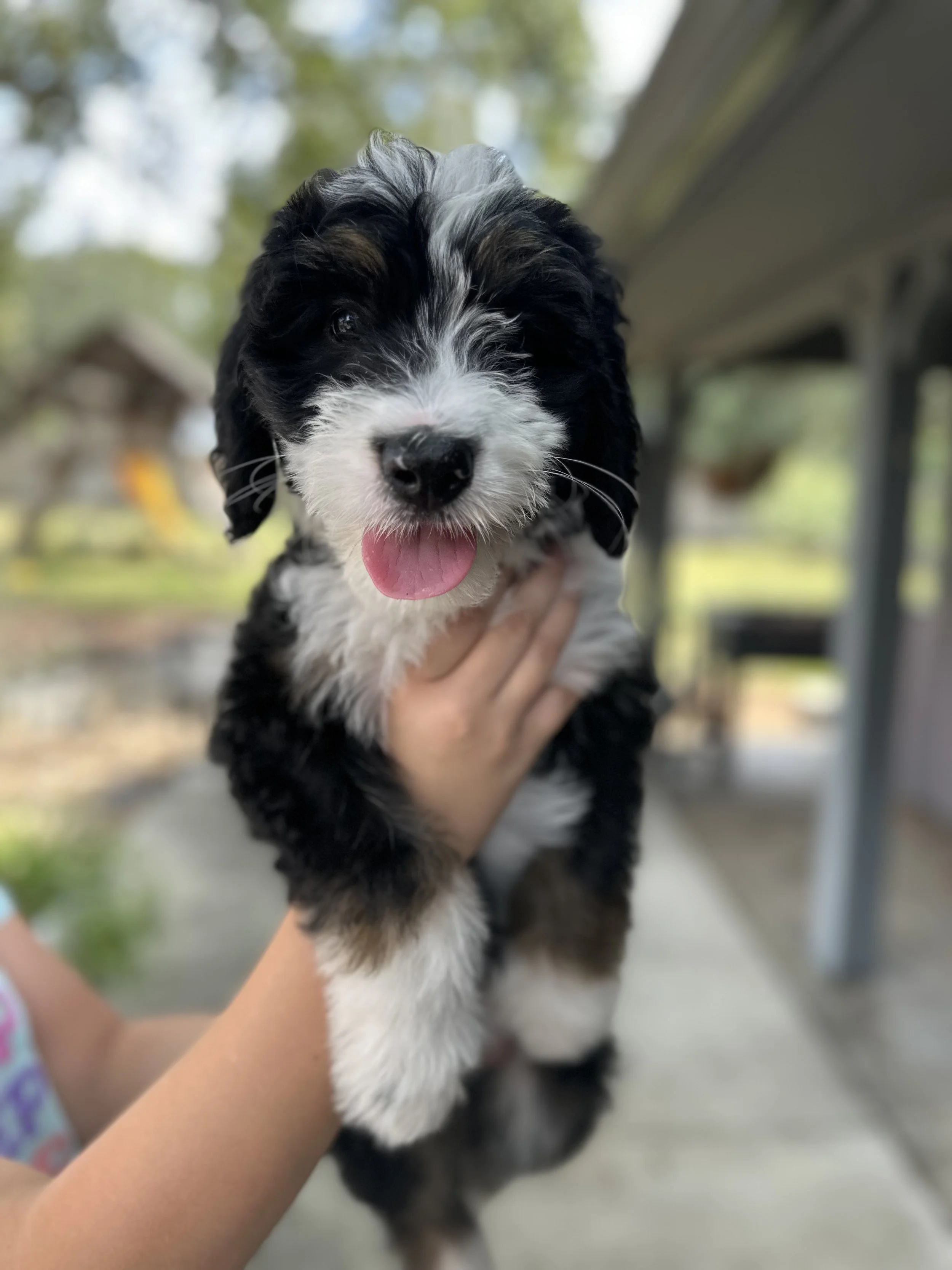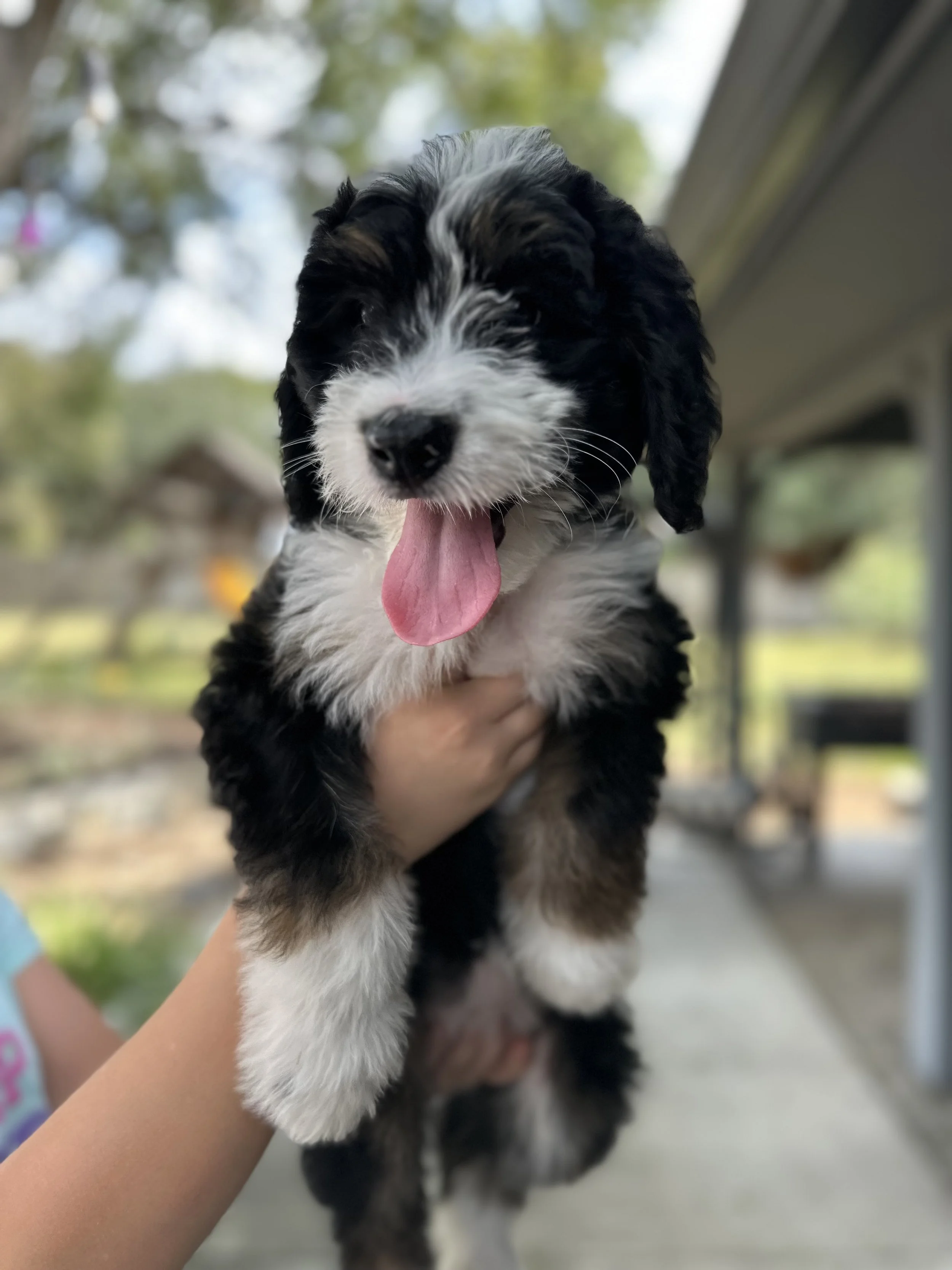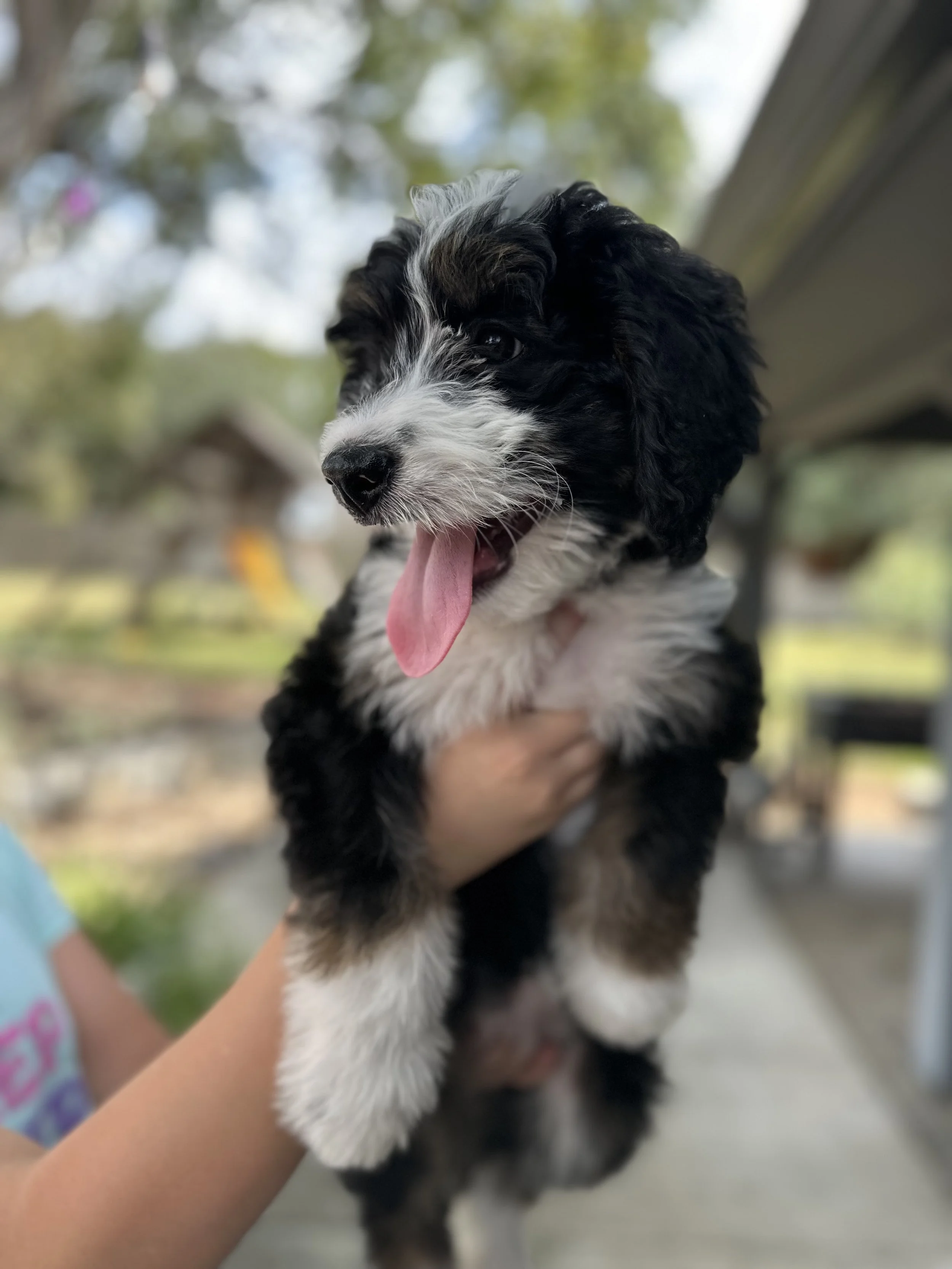 This litter is standard Reverse F1BB Bernedoodles (adult weight est. 65-85 lbs). They are often called “Ultra Bernedoodles” because they are >50% Bernese.